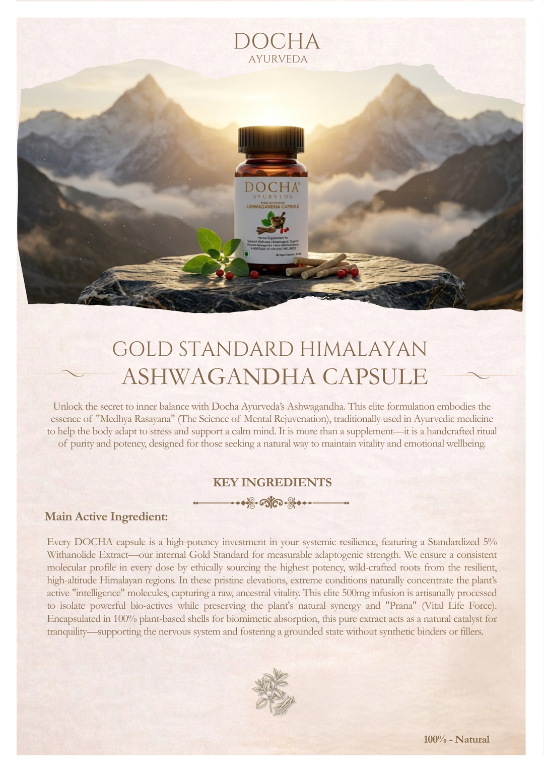 While the market is often saturated with low-grade root powders, DOCHA provides a Standardized 5% Withanolide Extract—the pinnacle of measurable adaptogenic strength.