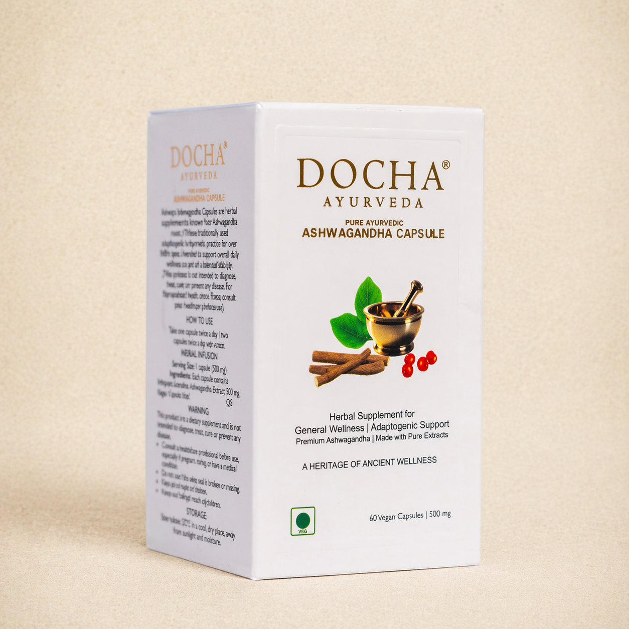 which vary in potency, DOCHA Ashwagandha Capsules provide a Standardized Extract, ensuring you receive the exact therapeutic molecular strength required to harmonize your body and mind every single day.