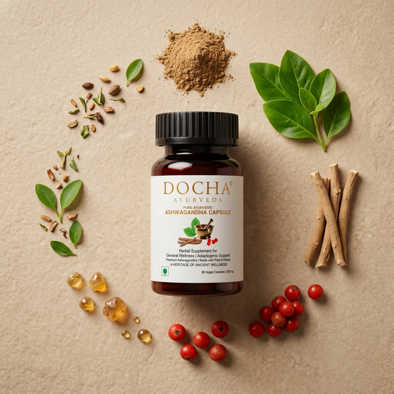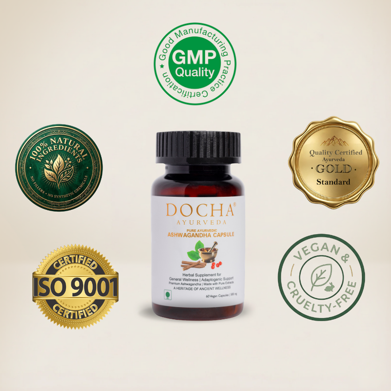 Quality and Purity Verified At Docha Ayurveda, we implement a rigorous, multi-tiered verification protocol designed to meet elite international standards. Our quality journey begins in specialized laboratories with meticulous in-house screening of our wildcrafted Himalayan Ashwagandha roots. To guarantee the "Adaptogenic Resilience Standard," we implement exhaustive testing at various stages of production, meticulously monitoring the concentration of active Withanolides to ensure every batch achieves